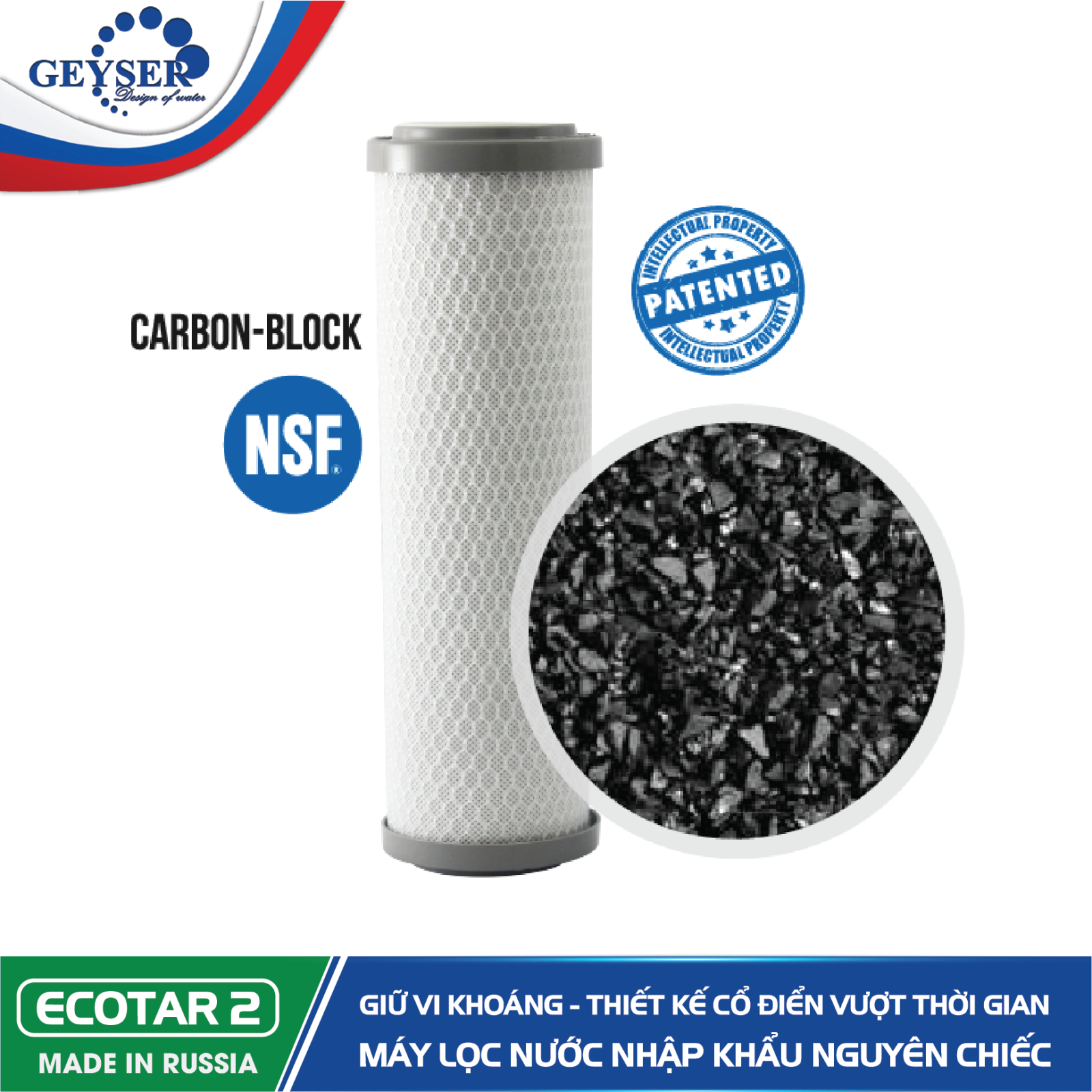 Lõi lọc CBC : Lọc hấp thụ đa năng được nâng cấp cho dòng Ecotar. Anti-Bacteria & viruses. lọc hấp thụ màu, mùi, loại bỏ các chất hữu cơ, clo, các chất độc hại…và tăng cường diệt khuẩn