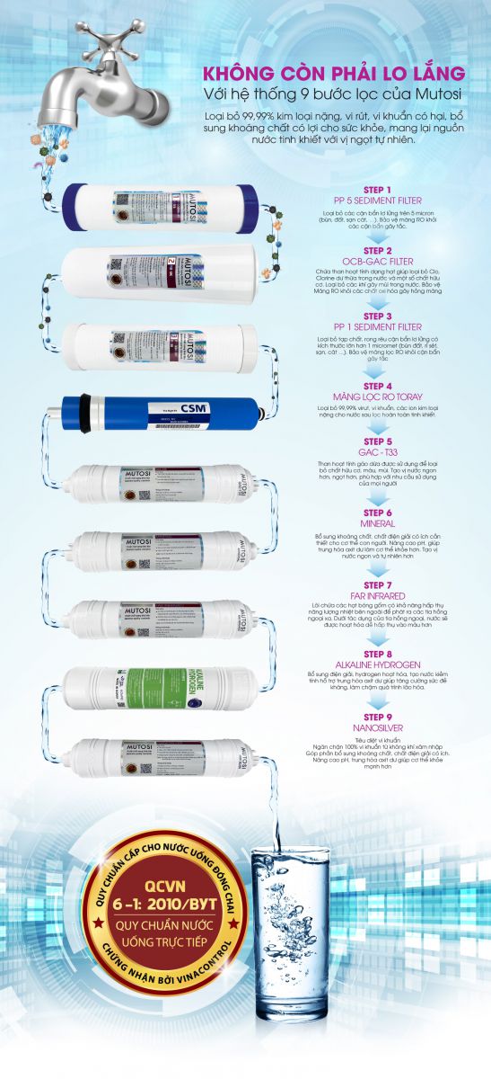 TÍCH HỢP CÔNG NGHỆ LỌC NƯỚC TINH KHIẾT RO 9 CẤP LỌC MẠNH MẼ