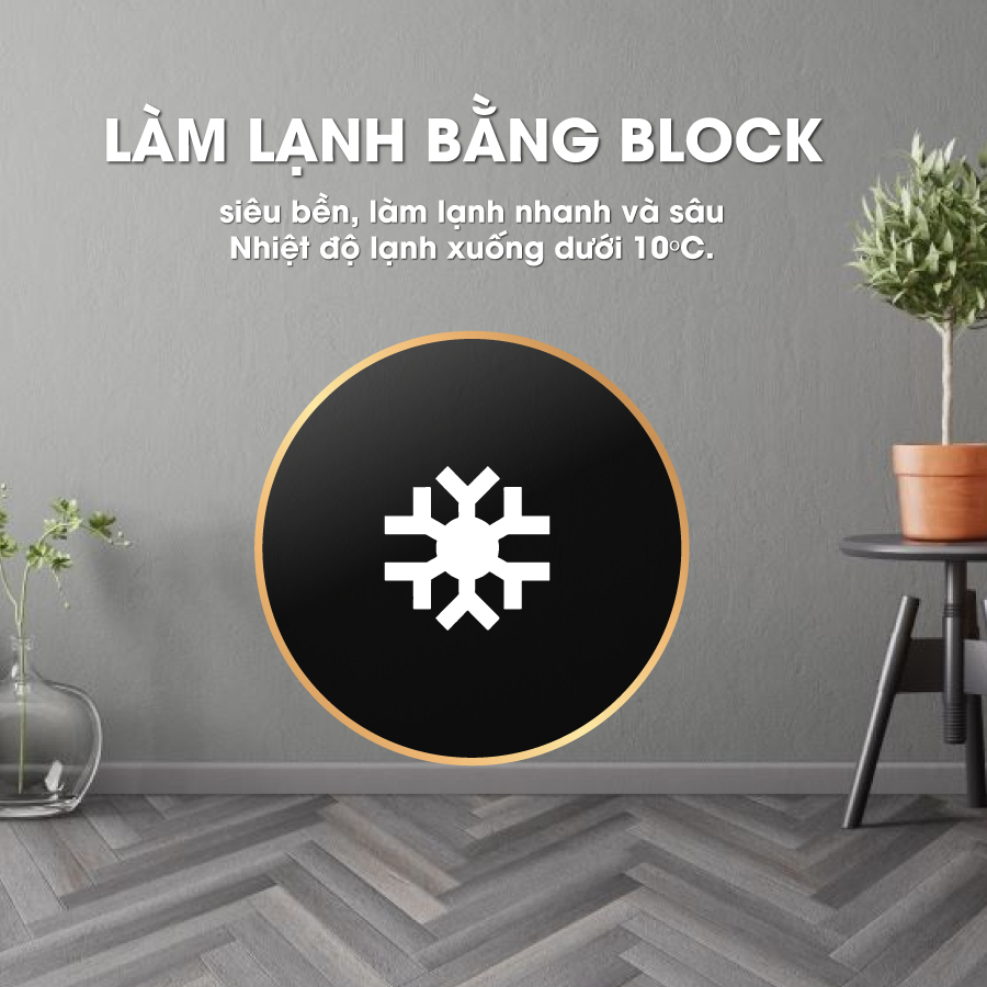 * Làm lạnh bằng Block siêu bền, làm lạnh nhanh và sâu. Nhiệt độ lạnh xuống dưới 10ºC