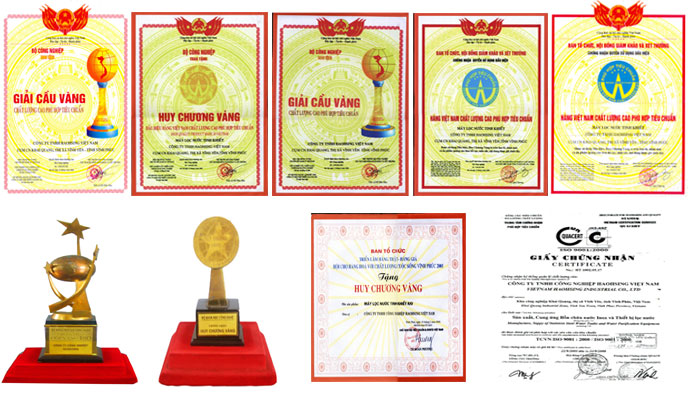 Sản phẩm máy lọc nước của thương hiệu Haohsing đạt được rất nhiều chứng nhận của Bộ Công Nghiệp về hàng tiêu dùng Việt Nam chất lượng cao phù hợp tiêu dùng, giành giải Cúp Vàng ISO của Bộ Khoa Học & Công nghệ, huy chương vàng triển lãm hội chợ hàng hóa tỉnh Vĩnh Phúc... Chính vì thế, khách hàng hoàn toàn yên tâm sử dụng sản phẩm máy lọc nước Haohsing.